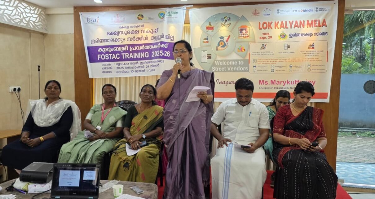ഇരിങ്ങാലക്കുട: ചെറുകിട നഗര സംരംഭകരെ ശാക്തീകരിക്കുന്നതിന്റെ ഭാഗമായി, പി.എം. സ്വനിധി (PM SVANidhi) പദ്ധതിയുടെ കീഴിലുള്ള ലോക് കല്യാൺ മേള ഇരിങ്ങാലക്കുട നഗരസഭയിൽ വിജയകരമായി സംഘടിപ്പിച്ചു. ഭക്ഷ്യോത്പാദന, വിതരണ മേഖലകളിൽ പ്രവർത്തിക്കുന്ന ഗുണഭോക്താക്കൾക്കായി “വൃത്തിയും ഭക്ഷ്യസുരക്ഷയും” എന്ന വിഷയത്തിൽ പ്രത്യേക പരിശീലനവും മേളയിൽ നടന്നു.