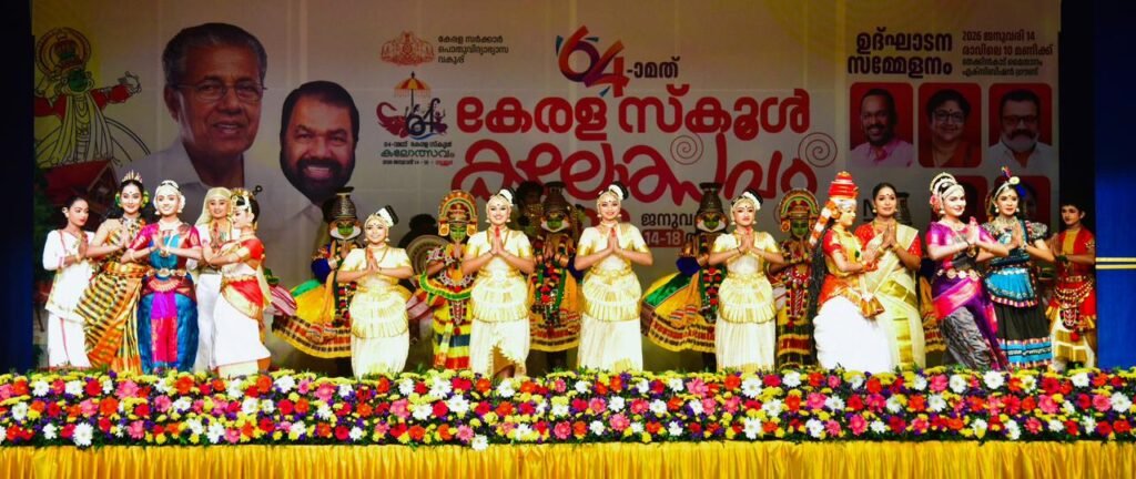 സംസ്ഥാന സ്കൂൾ കലോത്സവത്തിന്റെ ആവേശത്തിന് തുടക്കം കുറിച്ച്, പ്രധാന വേദിയായ സൂര്യകാന്തിക്ക് മുമ്പിൽ കലോത്സവ കൊടി ഉയർന്നു. പൊതുവിദ്യാഭ്യാസ വകുപ്പ് ഡയറക്ടർ എൻ. എസ്. കെ. ഉമേഷ് കൊടിമരത്തിൽ പതാക ഉയർത്തിയതോടെ 64-ാമത് സംസ്ഥാന സ്കൂൾ കലോത്സവത്തിന് ഔപചാരിക തുടക്കമായി.