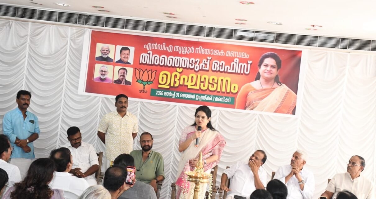 NDA തൃശൂർ നിയോജക മണ്ഡലം തിരഞ്ഞെടുപ്പ് കമ്മിറ്റി ഓഫീസ് പ്രശസ്ത സംഗീത സംവിധായകൻ ഔസേപ്പച്ചൻ ഉദ്ഘാടനം ചെയ്തു ബിജെപി സിറ്റി ജില്ലാ പ്രസിഡന്റ് ജസ്റ്റിൻ ജേക്കബ് അധ്യക്ഷത വഹിച്ച ചടങ്ങിൽ ബിജെപി ദേശീയ സമിതി അംഗം പത്മജാ വേണുഗോപാൽ മുഖ്യപ്രഭാഷണം നടത്തി. ചിലരുടെ മുഖം കണ്ടാൽ അവരുടെ മനസ് കണാം പത്മജയുടെ മുഖം കാണുന്നവർക്ക് തന്നെ അവരുടെ നന്മ മനസ്സിലാക്കാൻ കഴിയും എന്ന് ചടങ്ങ് ഉദ്ഘാടനം ചെയ്തുകൊണ്ട് ഔസേപ്പച്ചൻ പറഞ്ഞു പത്മജാ വേണുഗോപാലിനു പല അവസരങ്ങൾ ലഭിച്ചിട്ടുണ്ടെങ്കിലും, അതിലേറെ പ്രധാനപ്പെട്ട അവസരമാണ്l ഇപ്പോൾ BJP നൽകുന്നത് എന്ന് അദ്ദേഹം പറഞ്ഞു. ഭാരതീയ ജനതാ പാർട്ടി എന്ന പേര് ഭാരതത്തിലെ എല്ലാ വിഭാഗം ജനങ്ങളെയും ഉൾക്കൊള്ളുന്നു എന്നതിന്റെ അർത്ഥം കൂടിയാണ്