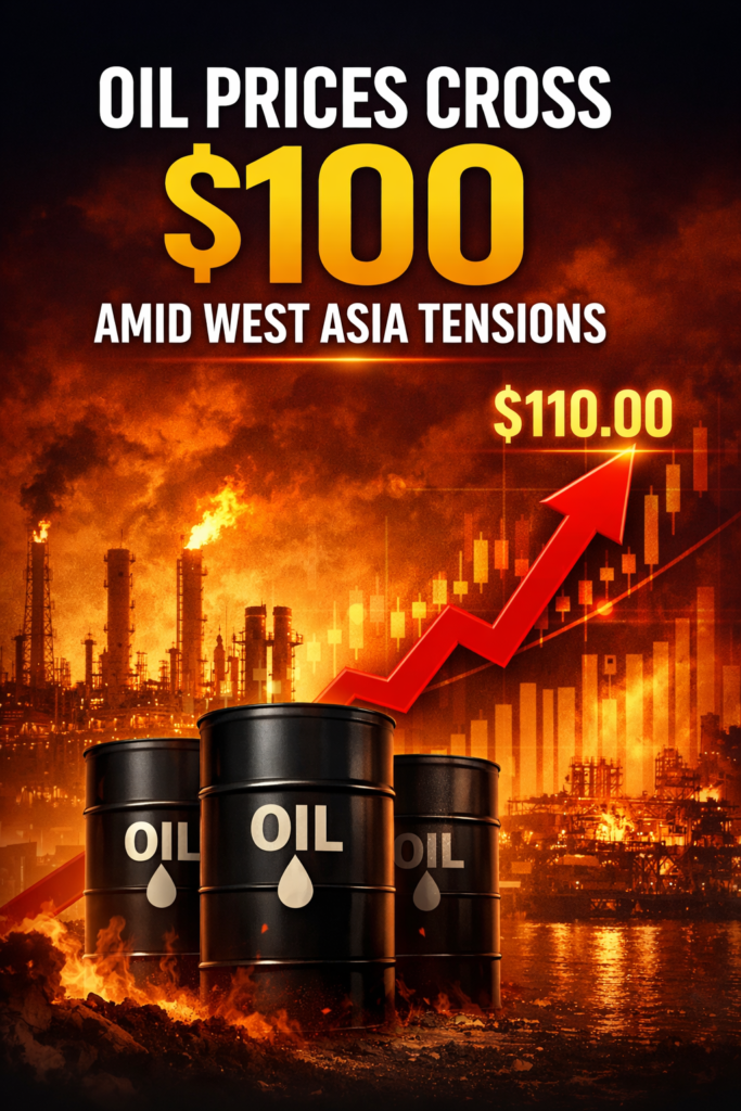 പശ്ചിമേഷ്യയിലെ സംഘർഷം ശക്തമാകുന്നതിനിടെ ആഗോള എണ്ണവില നാല് വർഷത്തിനിടെ ആദ്യമായി 100 ഡോളർ കടന്നു. ഹോർമുസ് കടലിടുക്ക് വഴി എണ്ണവിതരണം തടസ്സപ്പെട്ടതും പശ്ചിമേഷ്യയിലെ പ്രധാന എണ്ണ ഉൽപാദക രാജ്യങ്ങൾ ഉൽപാദനം കുറച്ചതുമാണ് ക്രൂഡ് ഓയിൽ വില കുതിക്കാൻ പ്രധാന കാരണം.