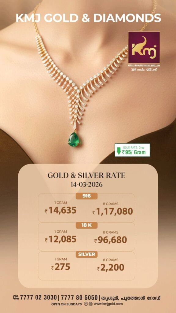 തിരുവനന്തപുരം: സംസ്ഥാനത്ത് ഇന്ന് സ്വർണവിലയിൽ വീണ്ടും കുറവ് രേഖപ്പെടുത്തി. ആഭരണ വിപണിയിൽ തുടർച്ചയായ ഇടിവാണ് ഇപ്പോൾ കാണുന്നത്. ഇന്ന് 22 കാരറ്റ് സ്വർണത്തിന് ഗ്രാമിന് ₹14,635 ആണ് വില. ഒരു പവൻ (8 ഗ്രാം) സ്വർണത്തിന് ₹1,17,080 രൂപയാണ് ഇന്നത്തെ നിരക്ക്.