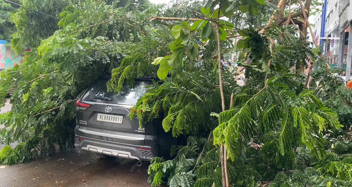 തൃശൂർ പടിഞ്ഞാറേക്കോട്ടയിൽ പാർക്ക് ചെയ്തിരുന്ന കാറിന് മുകളിൽ മരം ഒടിഞ്ഞു വീണു അൽപസമയം മുൻപ് പെയ്ത മഴയിലും കാറ്റിലുമാണ് റോഡരികിൽ നിന്ന മരം ഒടിഞ്ഞു വീണത് പടിഞ്ഞാറേക്കോട്ട – അരനാട്ടുകര റോഡിലാണ് ഇന്നോവയ്ക്ക് മുകളിലൂടെ മരം വീണത് വാഹനത്തിനുള്ളിൽ ആളുകൾ ഉണ്ടായിരുന്നില്ല