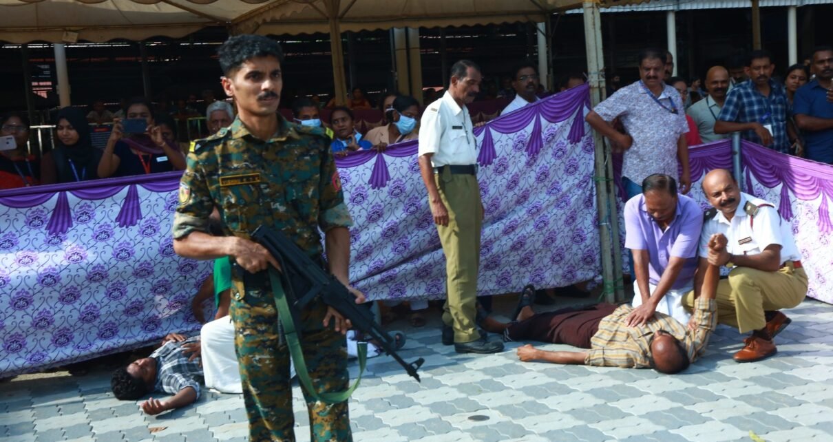 സ്ഫോടനം പോലെയുണ്ടാകുന്ന അപകടങ്ങളിലെ രക്ഷാപ്രവര്ത്തനവും പ്രശ്നബാധിത പ്രദേശങ്ങളില് നിന്നും ജനങ്ങളെ സുരക്ഷിത സ്ഥാനങ്ങളിലേക്ക് മാറ്റുന്നതുമായിരുന്നു ഗുരുവായൂര് അമ്പല പരിസരത്ത് മോക്ഡ്രില്ലായി അവതരിപ്പിച്ചത്. അപകടമുണ്ടാകുമ്പോള് റാപിഡ് റെസ്പോണ്സ് ആന്ഡ് റെസ്ക്യൂ ഫോഴ്സ്, അഗ്നിരക്ഷാസേന, പോലീസ്, ആരോഗ്യവകുപ്പ് എന്നിവരുടെ സുരക്ഷാ ക്രമീകരണങ്ങളും മോക്ഡ്രില്ലിലൂടെ അവതരിപ്പിച്ചു.