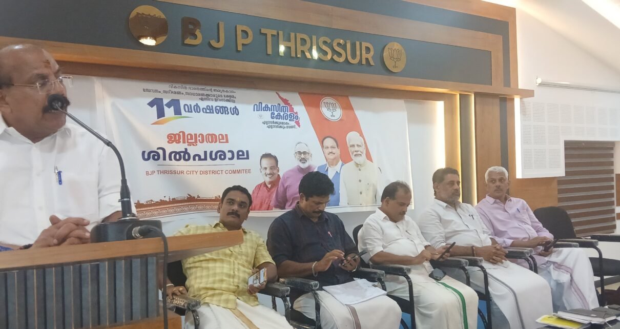 അദ്ദേഹം. സേവനം, സദ്ഭരണം, സാധാരണക്കാരുടെ ക്ഷേമം എന്നിവ ഉറപ്പാക്കിയ 11 വർഷങ്ങളാണ് കഴിഞ്ഞുപോയത്.ബിജെപി സിറ്റി ജില്ലാ കമ്മിറ്റിയുടെ നേതൃത്വത്തിൽ നടന്ന ശിൽപ്പശാലയിൽ ബിജെപി ജില്ലാ പ്രസിഡന്റ് ശ്രീ ജസ്റ്റിൻ ജേക്കബ് അധ്യക്ഷത വഹിച്ചു ജില്ലാ പ്രഭാരി ഗോപകുമാർ, മേഖലാ ജനറൽ സെക്രട്ടറി രവികുമാർ ഉപ്പത്ത്, വൈസ് പ്രസിഡണ്ട് ബിജോയ് തോമസ്, ജില്ലാ ജനറൽ സെക്രട്ടറിമാരായ പി കെ ബാബു, അഡ്വ. കെ ആർ ഹരി, അജി ഘോഷ് എന്നിവർ പ്രസംഗിച്ചു.