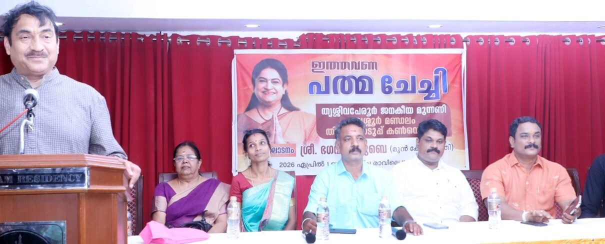 തൃശ്ശിവപേരൂർ ജനകിയ മുന്നണി എൻഡിഎ തൃശ്ശൂർ നിയോജക മണ്ഡലം സ്ഥാനാർഥി പദ്മജ വേണുഗോപാലിൻ്റെ വിജയത്തിന് വേണ്ടി വിവിധ സംഘടനകളുടെ നേതൃത്വത്തിൽ കൺവെൻഷൻ നടത്തി. ചടങ്ങിൽ തൃശൂർ നിയോജകമണ്ഡലത്തിലെ 350 ഓളം പ്രവർത്തകർ പങ്കെടുത്തു. മഹാരാഷ്ട്ര എംഎൽഎ സി ശ്രീകാന്ത് ഭാരതി ഉൽഘാടനം ചെയ്തു. മുന്നണി ചെയർമാൻ സുരേഷ് കുഴുപ്പിള്ളിയാണ് അധ്യക്ഷത വഹിച്ചത്. ജില്ല കൺവീനർ രാജീവ് പേരമംഗലത് ഹാരം അണിയിച്ചു പദ്മജ വേണുഗോപലിനെ സ്വീകരിച്ചു. ബി. ജെ. പി ജില്ലാ ജനറൽ സെക്രട്ടറി കെ. ആർ. ഹരി, Read More…