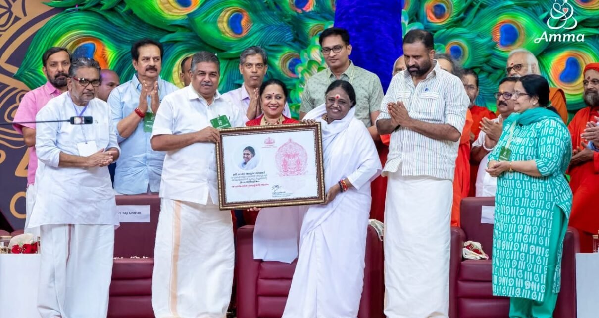 കൊല്ലം: ഐക്യരാഷ്ട്രസഭയുടെ ജനറല് അസംബ്ലിയില് മാതാ അമൃതാനന്ദമയി ലോകത്തെ മലയാളത്തില് അഭിസംബോധന ചെയ്തതിന്റെ രജത ജൂബിലി ആഘോഷവേളയില് ആദരവുമായി സംസ്ഥാന സര്ക്കാര്. അമൃത വിശ്വവിദ്യാപീഠം അമൃതപുരി ക്യാംപസില് നടന്ന ചടങ്ങില് സാംസ്കാരികവകുപ്പ് മന്ത്രി സജി ചെറിയാനാണ് മാതാ അമൃതാനന്ദമയിയെ ആദരിച്ചത്. ഐക്യരാഷ്ട്രസഭയിലെ പ്രസംഗം ‘അമൃതവര്ഷം 72’ വേദിയില് പുനരവതരിപ്പിച്ചപ്പോള് ജന്മദിനാഘോഷത്തില് പങ്കെടുക്കാന് എത്തിയ ആയിരങ്ങള് ഹര്ഷാരവം മുഴക്കി. ലോകമാകെ സേവനത്തിന്റെയും സ്നേഹത്തിന്റെയും പ്രകാശം പരത്തുന്ന മാതാ അമൃതാനന്ദമയി കേരളത്തിലെ സംസ്കാരിക മൂല്യങ്ങളാണ് മാതൃഭാഷയിലൂടെ ലോകത്തിനുമുന്നില് പരിചയപ്പെടുത്തിയതെന്ന് മന്ത്രി പറഞ്ഞു. മലയാള Read More…